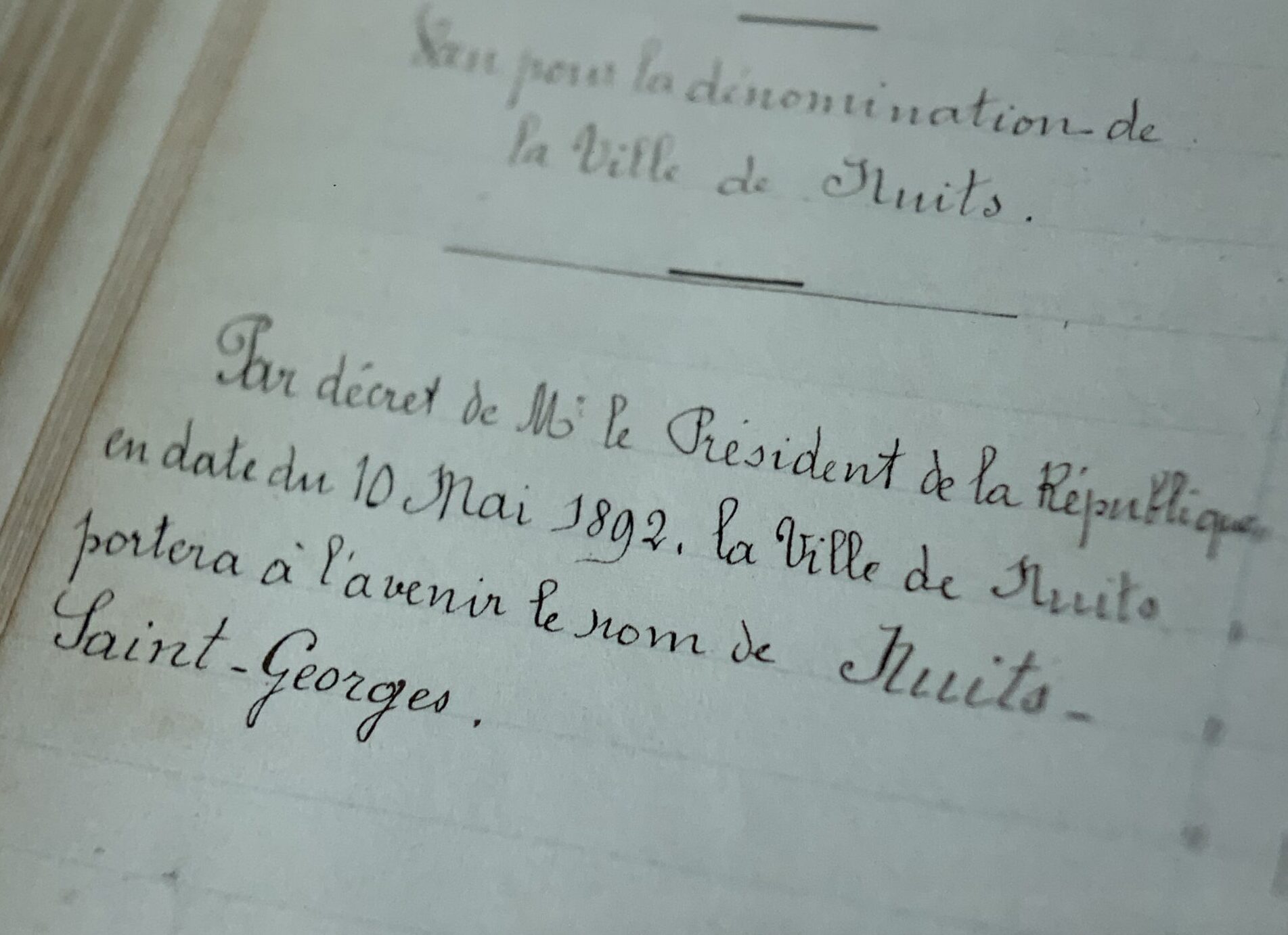 Dans ‘Climats et Lieux-dits des Grands Vignobles de Bourgogne / Atlas et Histoire des Noms des Lieux’, Marie-Hélène Landrieu-Lussigny écrit: « Cette parcelle aurait été plantée dès l’an Mil et serait la première à l’avoir été à Nuits. Elle fut donnée en 1023 par Humbert de Vergy, archidiacre d’Autun, et sa sœur Élisabeth de Vergy au Chapitre Collégial de St-Denis fondé par lui à Vergy la même année. Aurait-elle ensuite appartenu à la très ancienne Confrérie de St-Georges? … C’était une Confrérie de vignerons dont le patron était St-Georges, l’un des premiers saints à protéger les vignes de la Côte… »